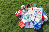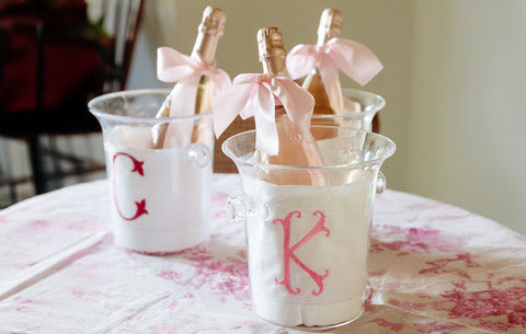 Custom wine glasses, buckets, and festive napkins make the perfect gift to toast your favorite holiday hostess in style.