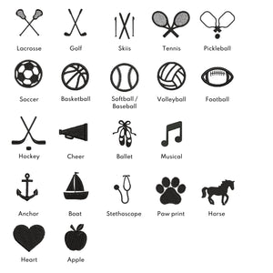 • Embroidery will be sized down according to name size, font style and max embroidery width which varies by product.