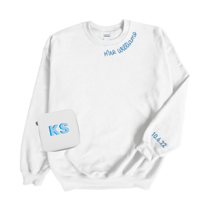• This set includes: 1 White Custom Embroidered Sweatshirt & 1 Travel Jewelry Case with Pouches