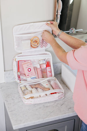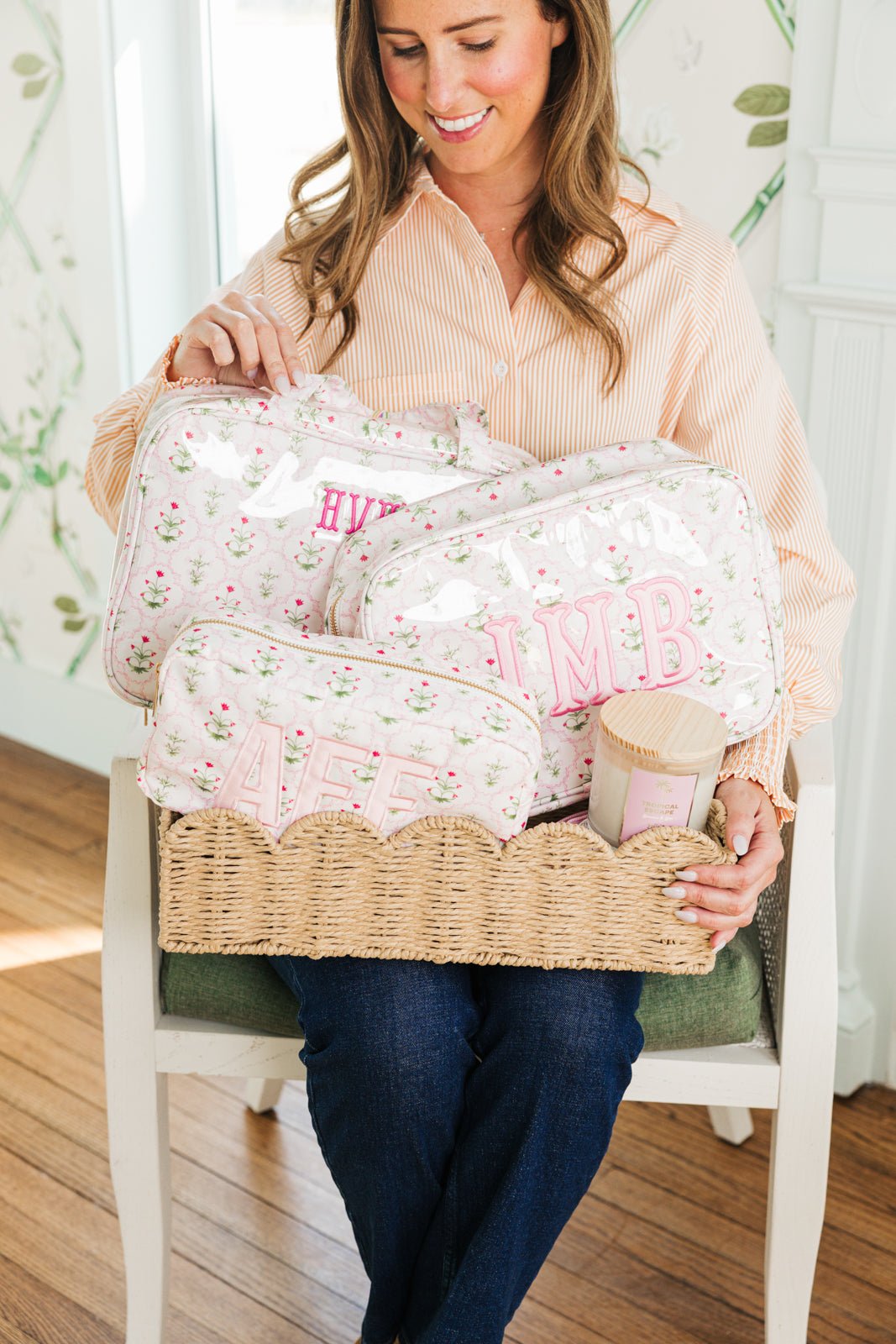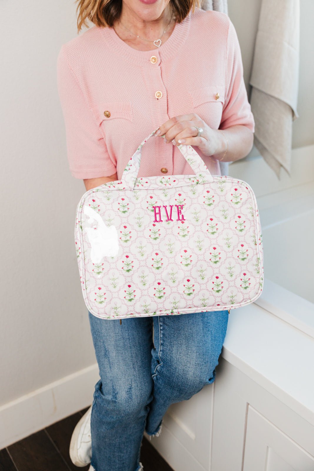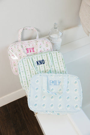 Upgrade your travel routine with the Hanging Toiletry Bag from our exclusive collaboration with artist Camilla Moss. Designed in her signature watercolor patterns and personalized with your monogram, this clear-coated embroidered toiletry bag keeps all your essentials beautifully organized and easy to access.
