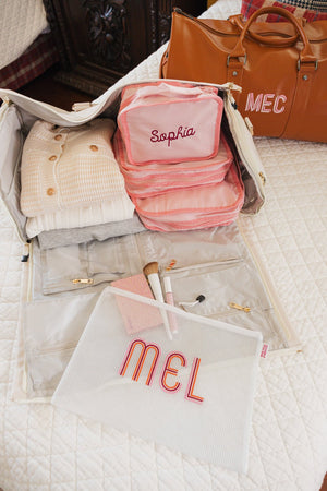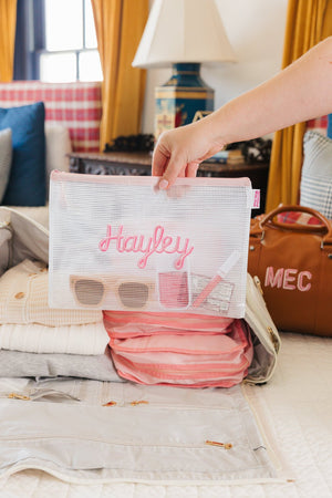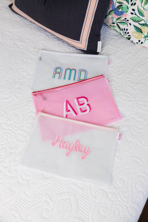Get ready to turn heads with our Embroidered Pool Bag! Introducing our beloved pool bag, now with unique embroidery! This handy pouch is a must-have for all your adventures, holding all your essentials in one place. Customize it to your heart's desire and make a stylish statement. A great catchall for any stylish customer!