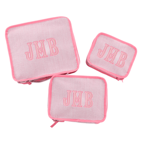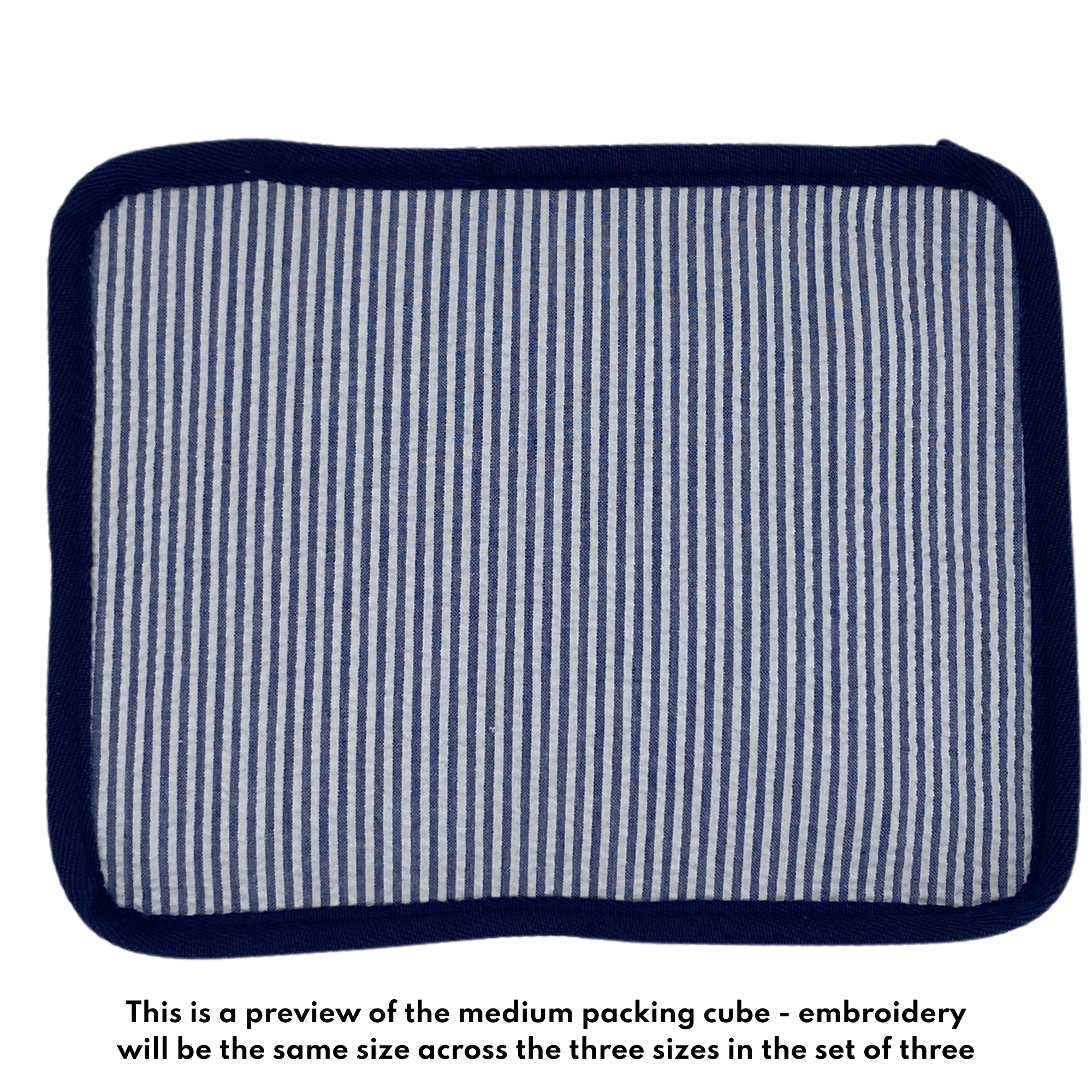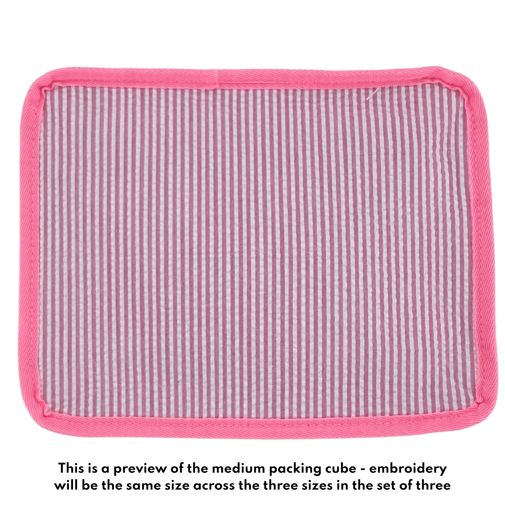 Stay organized in style with these Embroidered Seersucker Packing Cubes! The cute seersucker design adds a touch of charm to your travel essentials, while the custom applique monogram lets you add your own personal touch. Travel in style and keep everything neat, tidy, and easy to find.