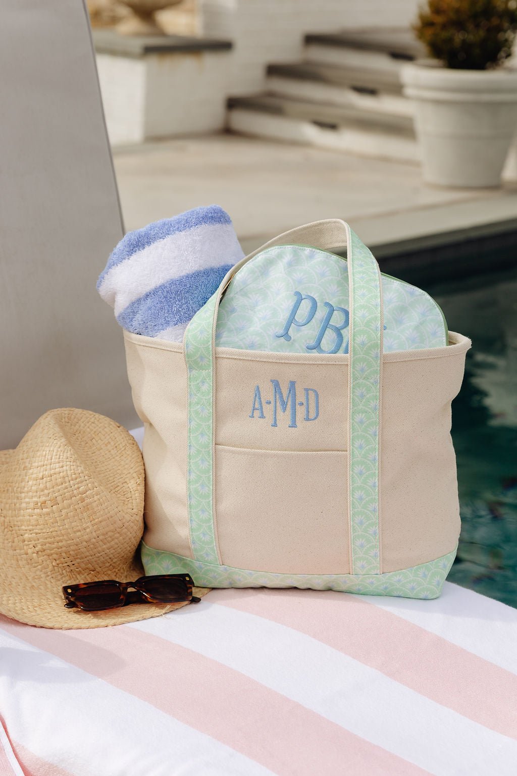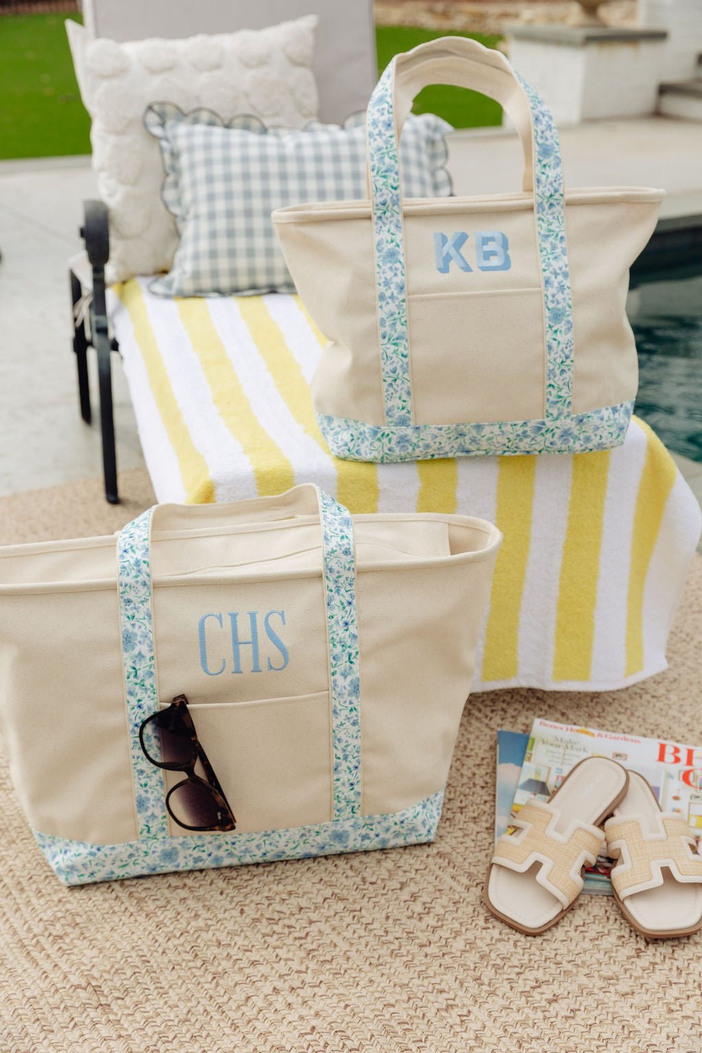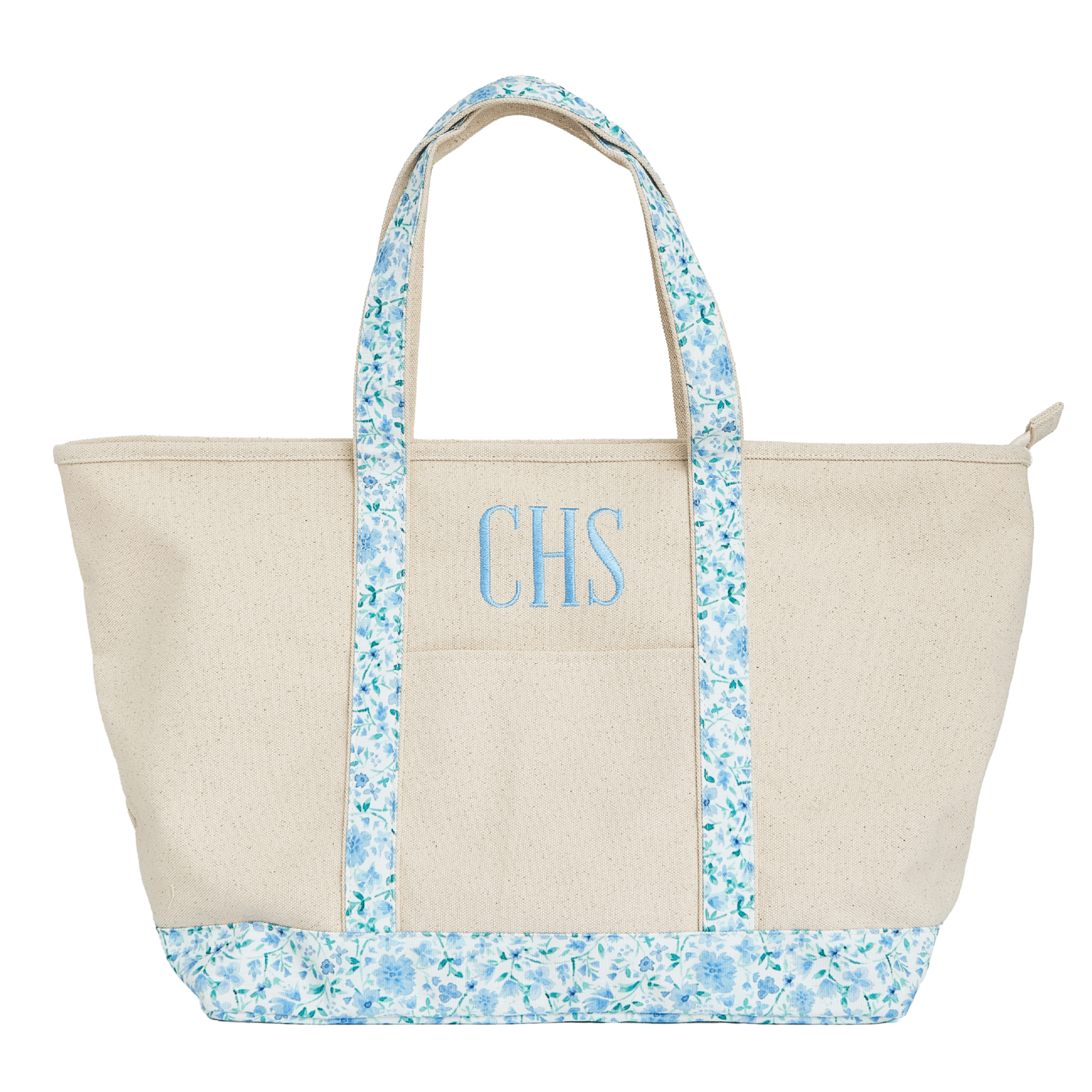 Elevate your everyday style with our Personalized Canvas Tote Bag, designed to be both timeless and functional. Crafted from thick, durable canvas, this tote features patterned straps in our exclusive spring prints for a fresh, elevated look. With a top zip closure and a convenient front exterior pocket, it keeps your essentials secure while staying effortlessly stylish. Finished with a custom embroidered monogram or name in the thread color of your choice, this tote is a personalized staple you’ll reach for again and again.